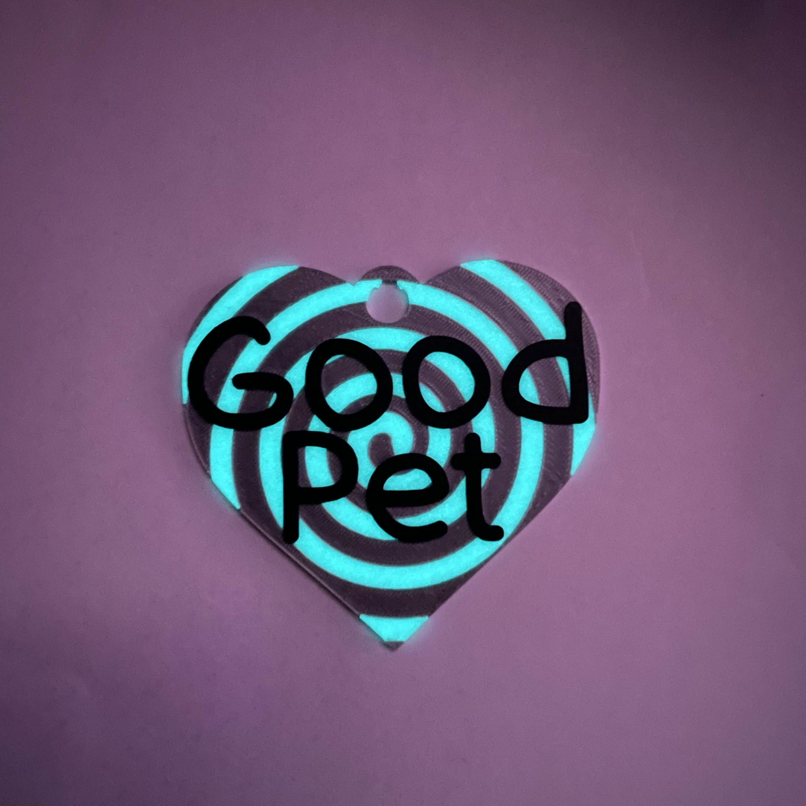 Silver and Glow Blue, Good pets unite. 70mm w 3D printed in PLA.